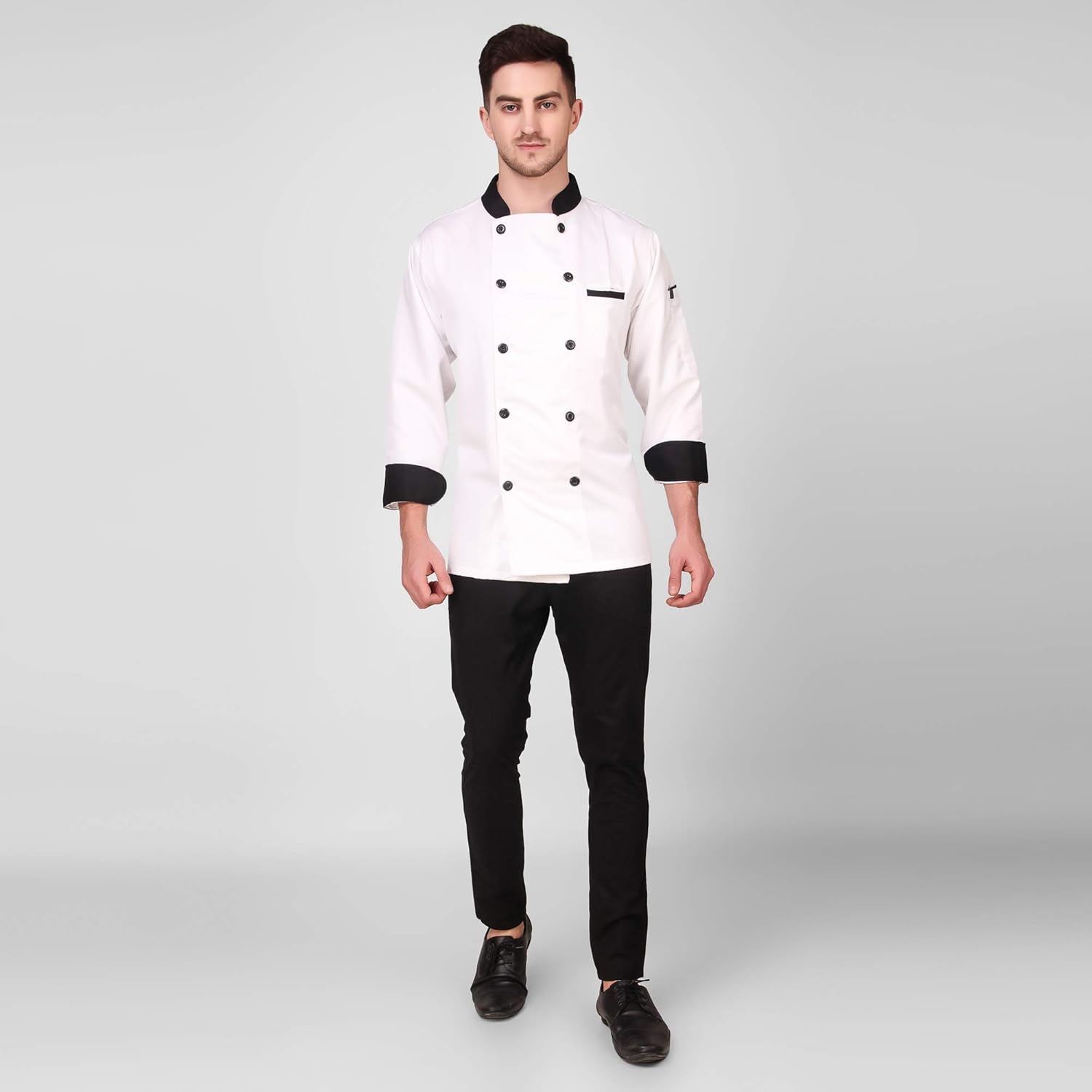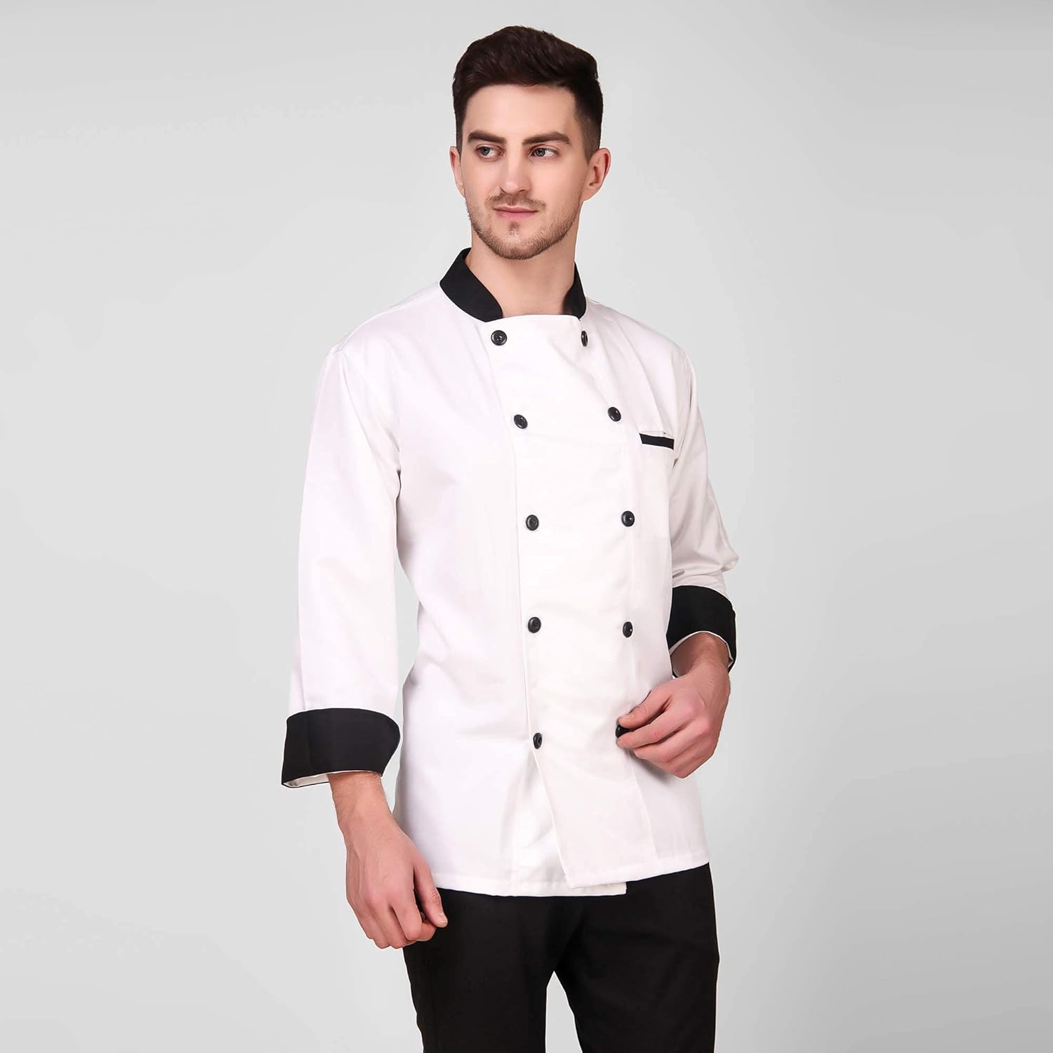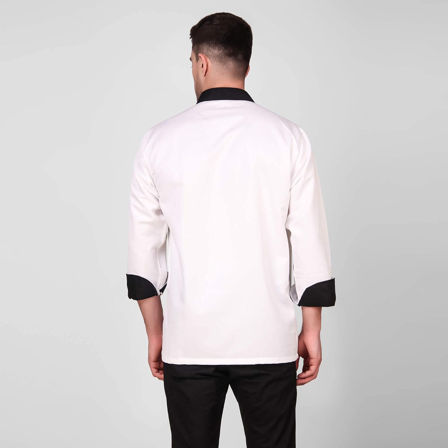 KODENIPR CLUB Men's And Women's Casual Style White Chef Coat Black Contrast,Polycotton,Size (Medium(38))