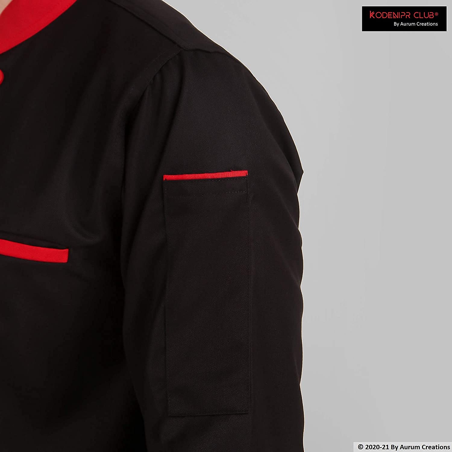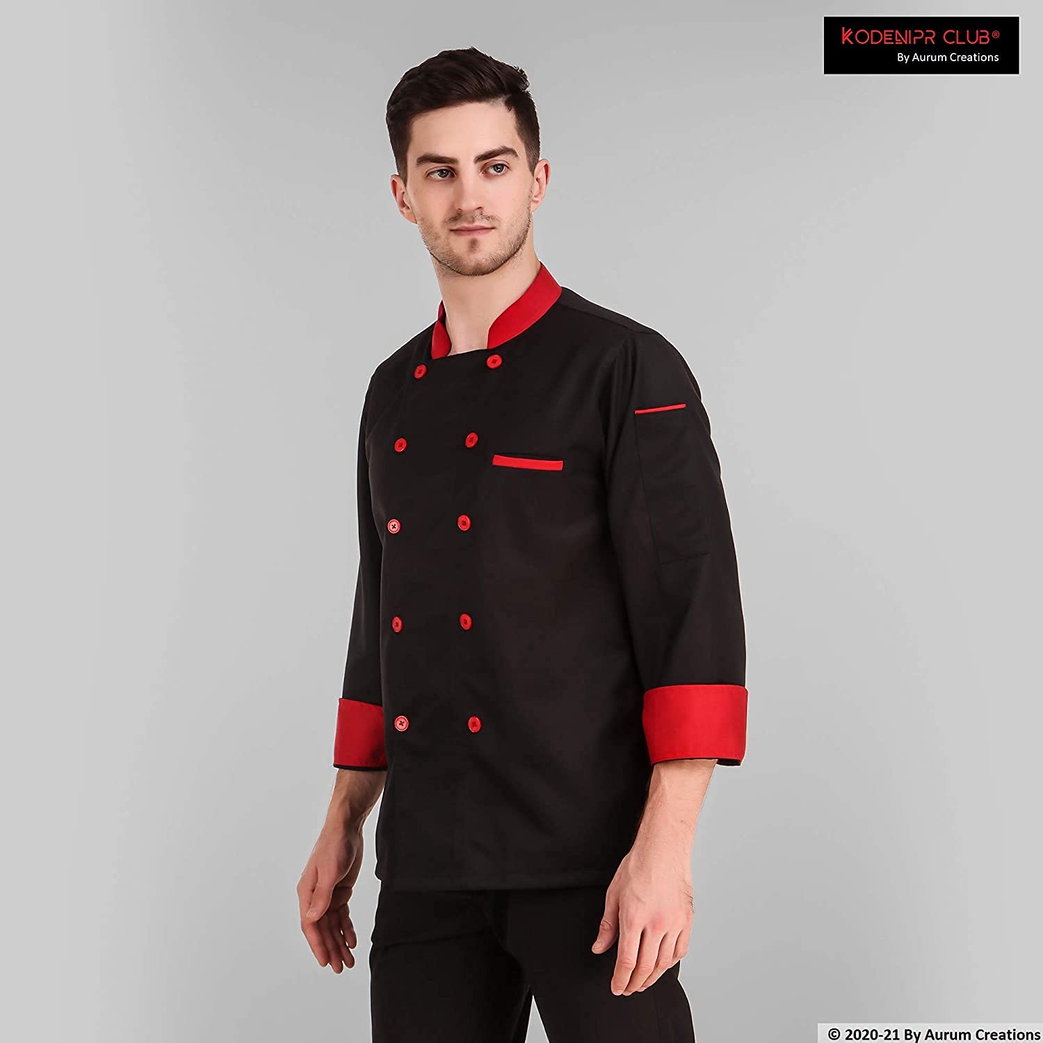 KODENIPR CLUB Men's And Women's Black Chef Casual Style Coat Red Contrast,Poly/Cotton,Size (Xx-Large(44))